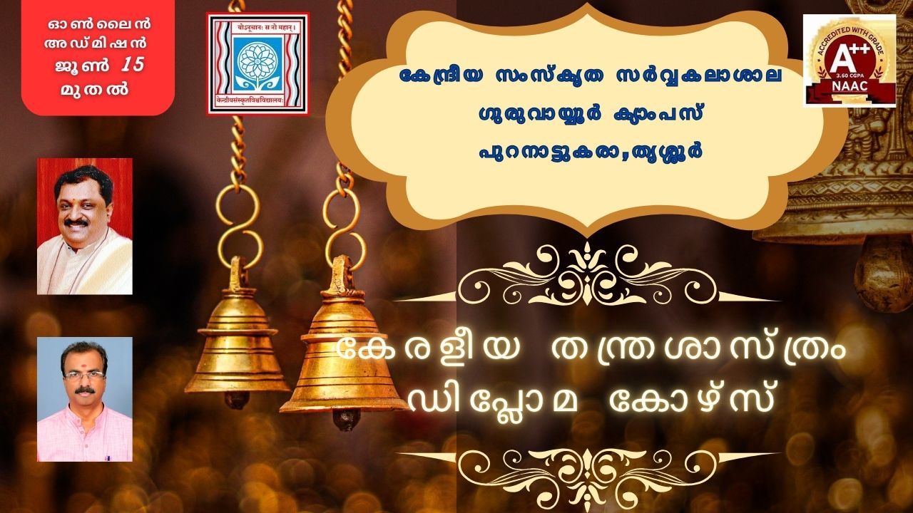At present the campus at Puranattukara offers the courses of Prak Sastri (Intermediate), Sastri(B.A) and Acharya (MA) in the disciplines of Vedanta, Sahitya, Vyakarana, Jyotisha and Nyaya.ITEP(Integrated Teacher Education Programme)(BA B.Ed), Siksha Sastri (B.Ed), Diploma in Yoga and Ayurveda Sahitya(DYAS), PG Diploma in Yogic Science, One-Year Diploma Course In Keraliya Tantra Shastra and Doctoral research Vidya Varidhi(Ph.D.) is also offered.